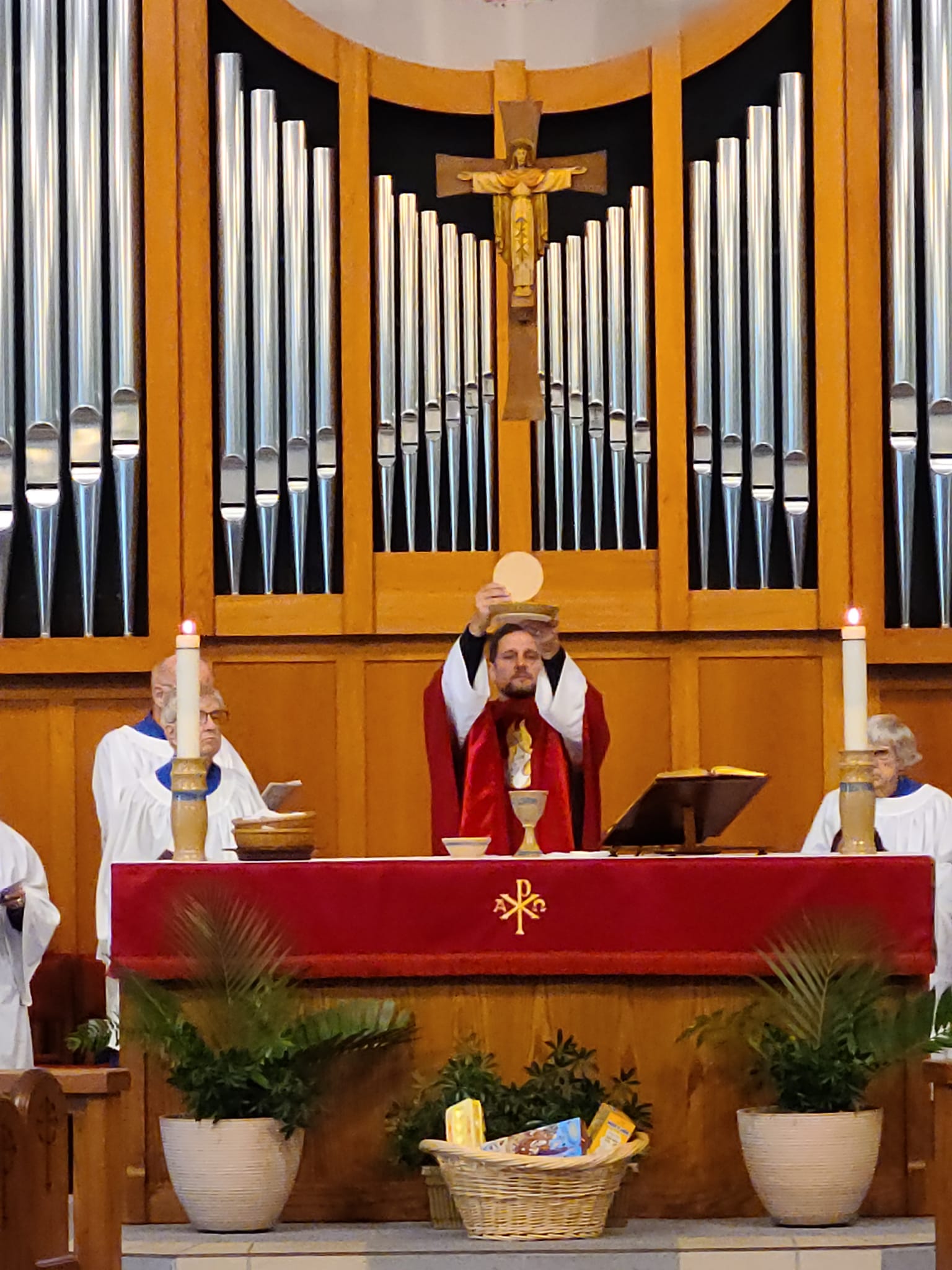 The climax of the Eucharistic liturgy is when we come to the altar and receive the Bread and Wine which have become for us the Body and Blood of Jesus Christ, thus strengthening our unity with Christ that we may be transformed to be Christ for the world. When we engage the Eucharist, we “behold what we are, and become what we receive,” as St. Augustine said centuries ago. All baptized Christians are welcome to come to the altar and receive Holy Communion.